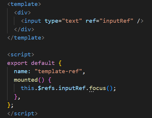 ex) <input type="text" ref="inputRef" />