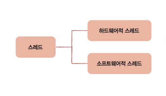 '실행 흐름의 단위' 으로 하드웨어 스레드와 소프트웨어 스레드가 있다.
