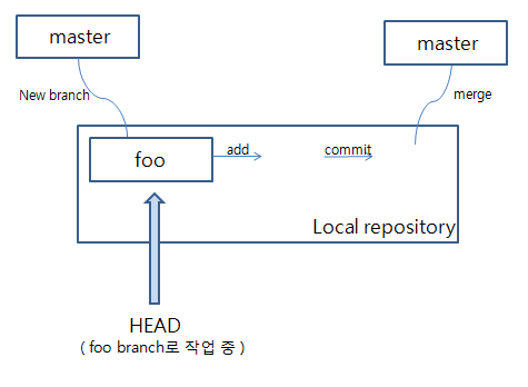 기존에는 master 브랜치만 있는데 branch를 생성해서 새로운 working directory가 생성되었고, commit을 한 후 master로 병합( merge )하는 것을 보여줍니다.