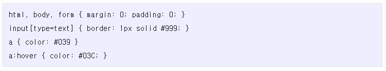 - 블록이나 요소의 모양(color, size..), 상태(disabled, checked..)를 정의한다.