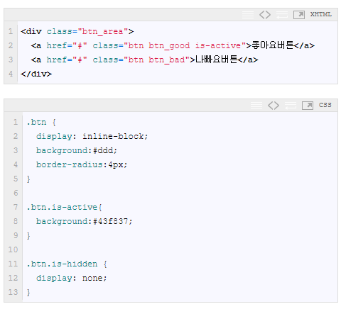 – 접두사를 사용하여 레이아웃, 모듈, 상태 여부를 알 수 있도록 : layout-, module-, is-