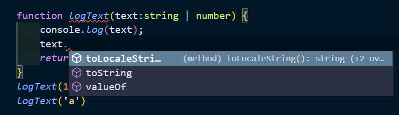 - 문자로 받은 변수 a는 타입이 string | number로 표기가 된다.